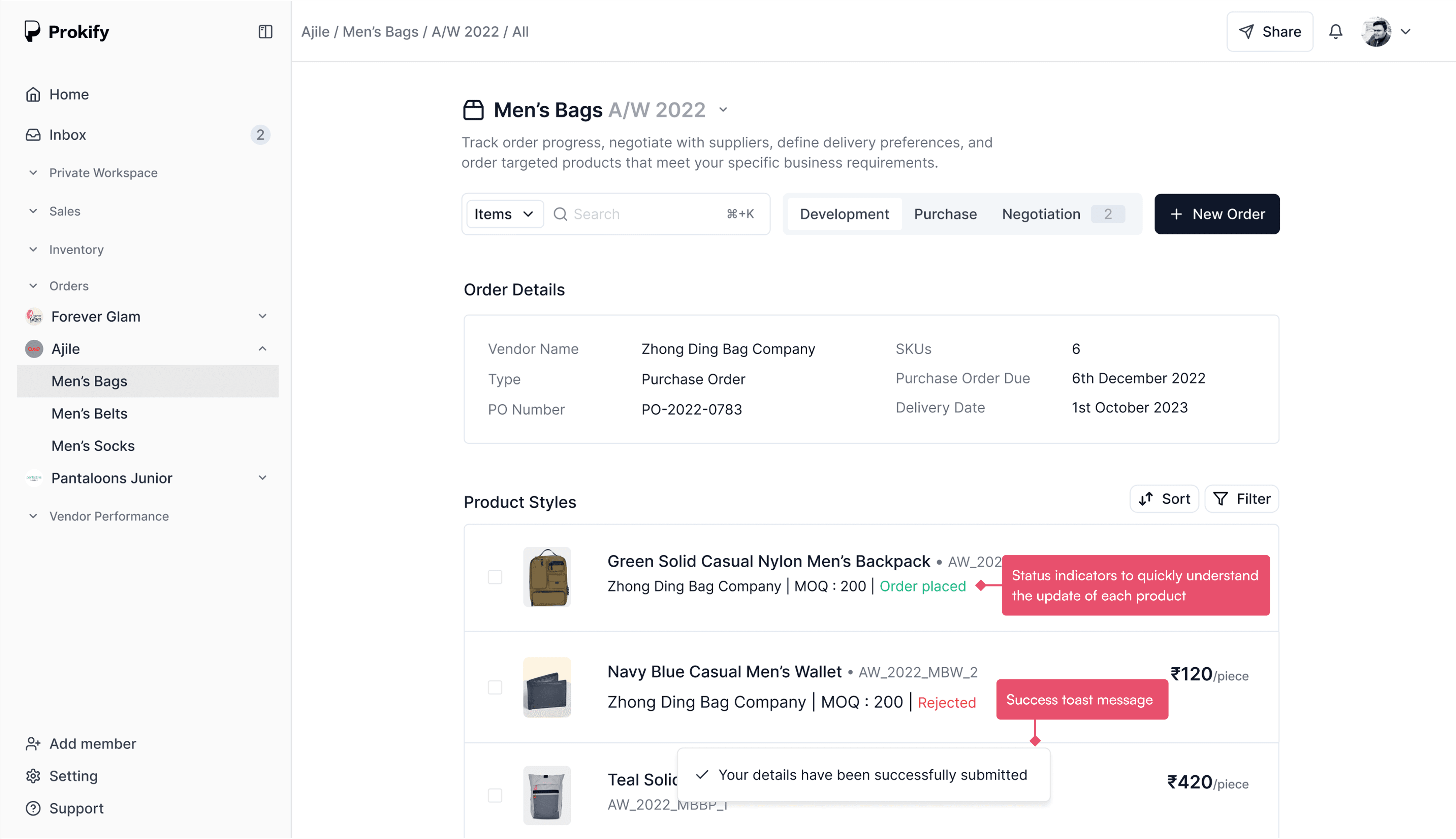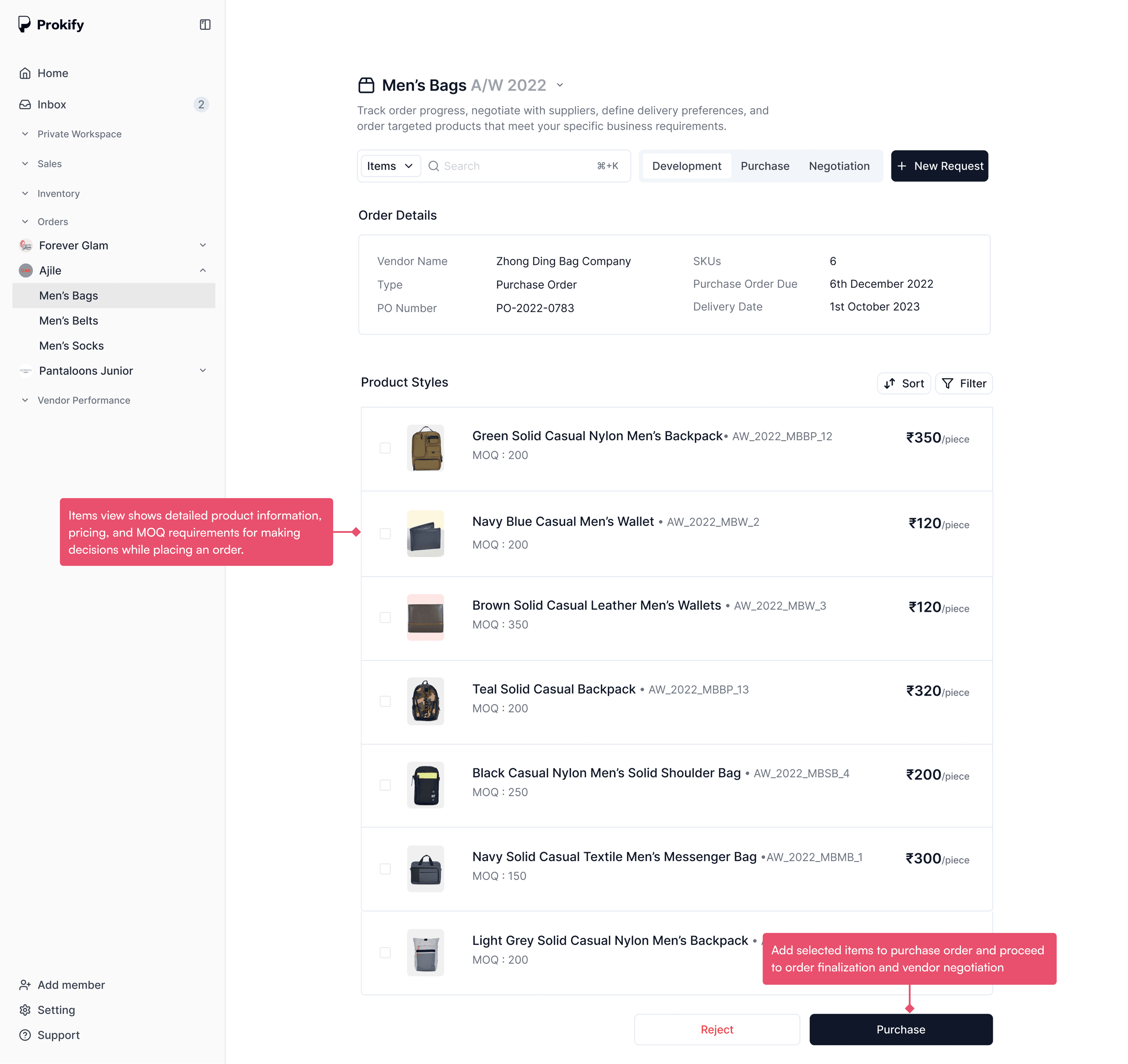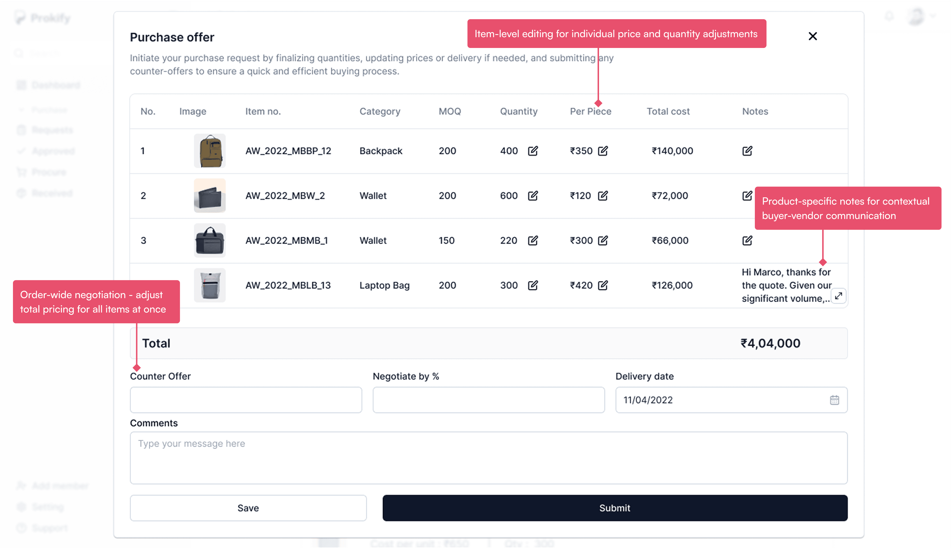 Negotiation feature for Pantaloon's internal procurement tool, streamlining Purchase Order approvals and communication